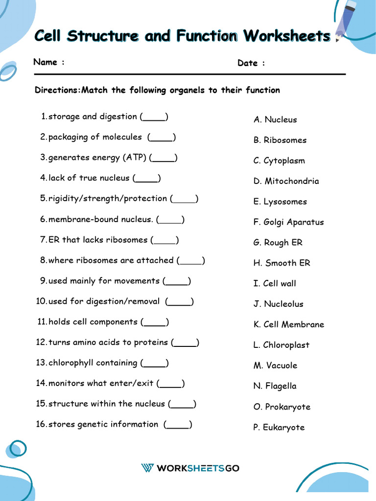Free Printable Cell Structure Worksheets