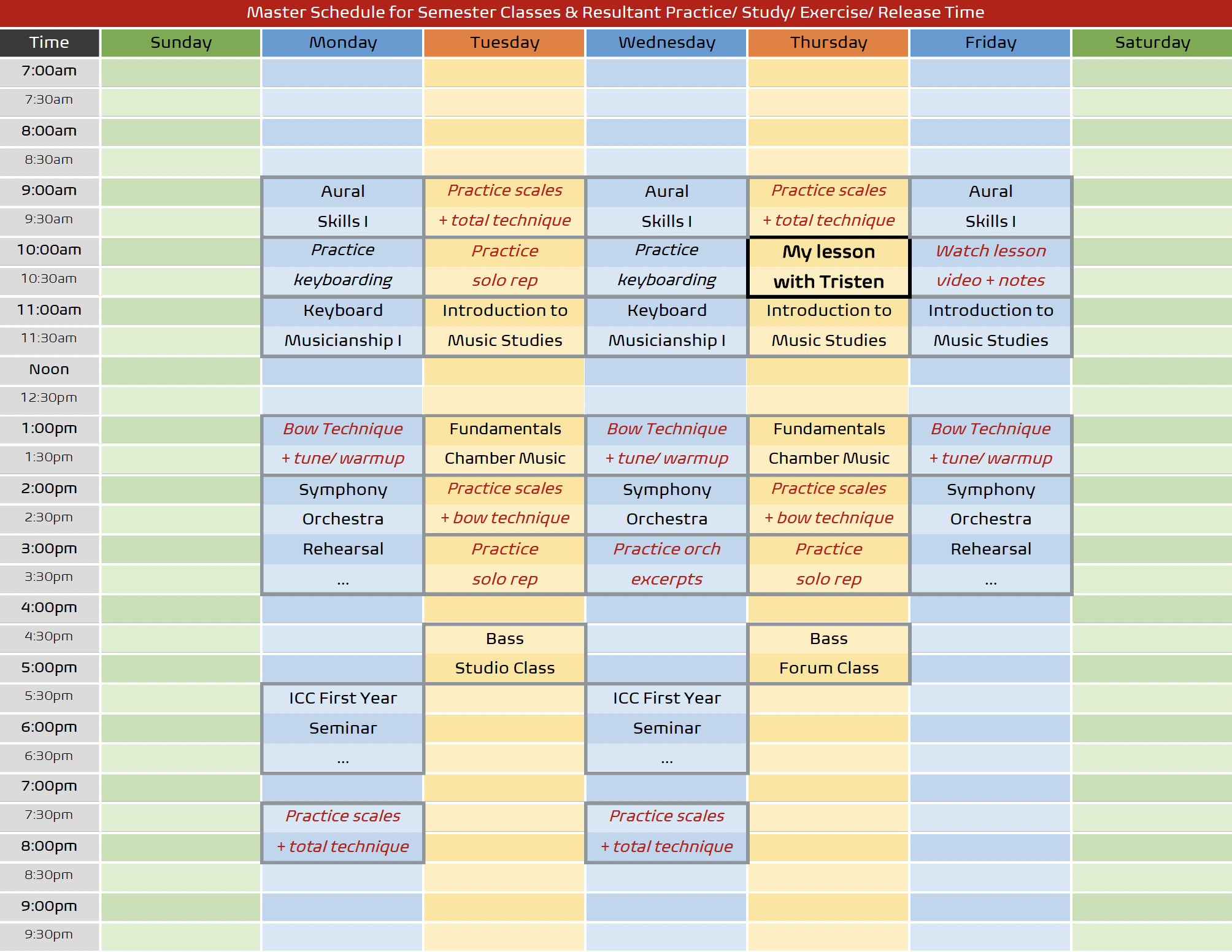 Mock FirstYear Schedule Ithaca College