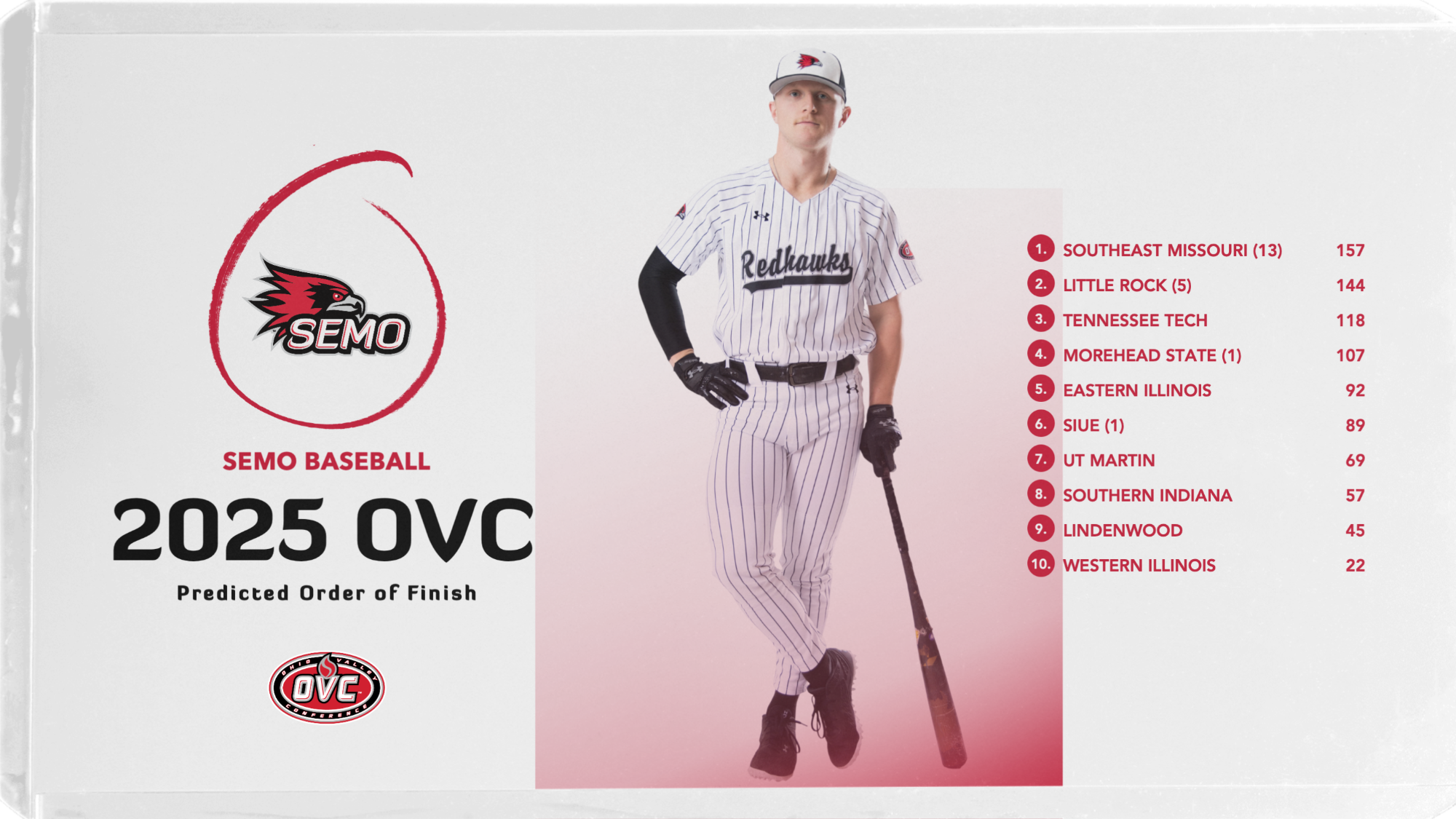 Southeast missouri picked as 2025 ovc preseason favorite:. See roster for more complete team list. Explore the latest stats, scores, and news of the southeast missouri state baseball team on d1baseball. 2024 southeast missouri state university redhawks (ohio valley conference) batting and pitching stats + roster + season information.