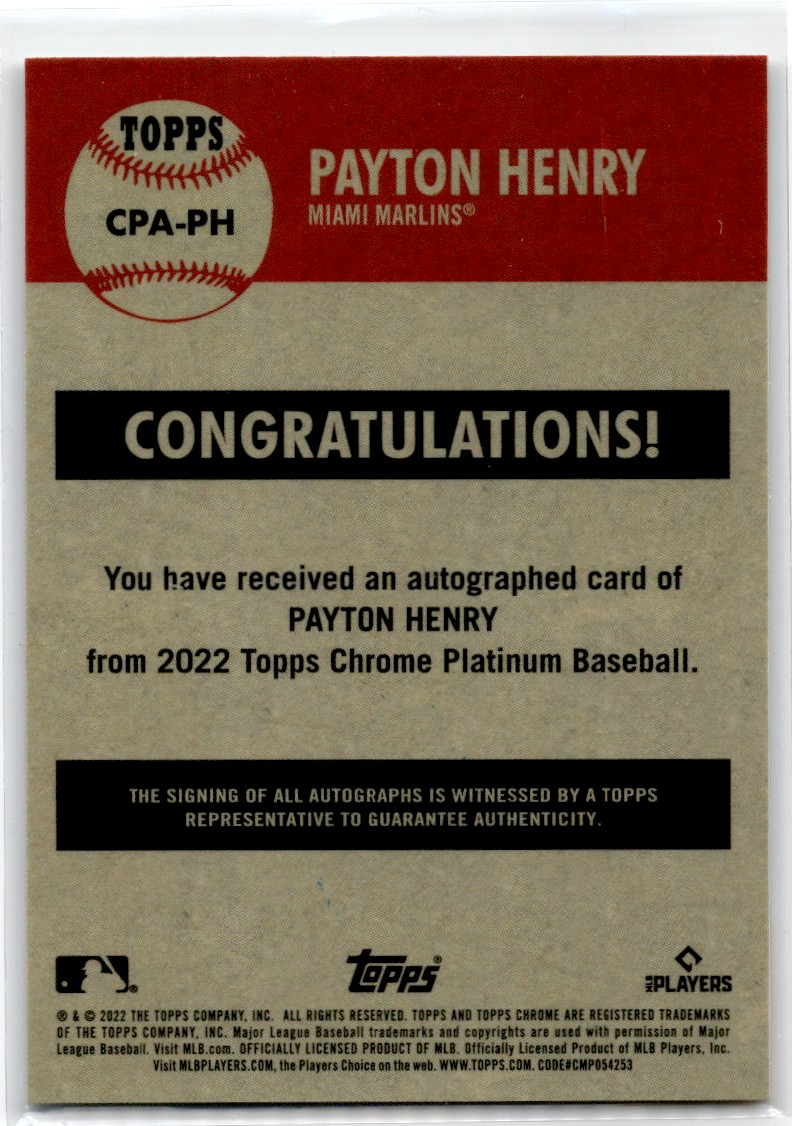 2022 Topps Chrome Platinum Anniversary Autographs Payton Henry CPAPH
